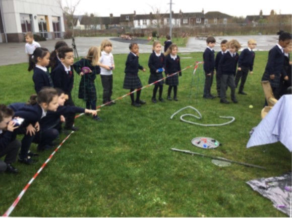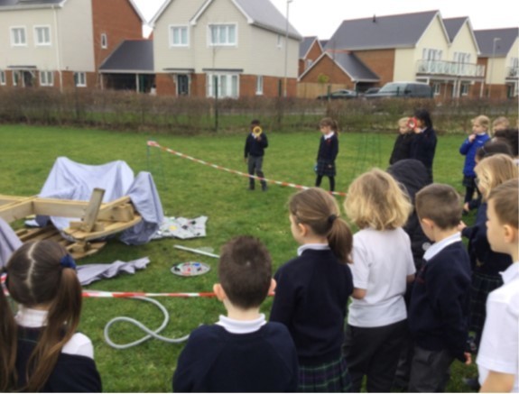 Year 1 and 2 had fun investigating an unusual event on the playground. On arrival at school, the children discovered that a spaceship had crash landed! Not only had one of our benches been upturned but we discovered lots of pieces of a control panel scattered across the field.